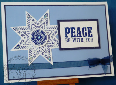 My card is very clean and simple, using the set Yonder Star as well as a centre from Dainty Doilies. Everything is stamped in Versafine Majestic Blue, the centre and the sentiment are popped up on some Pinflair glue and I've added a few touches of Ice Stickles.