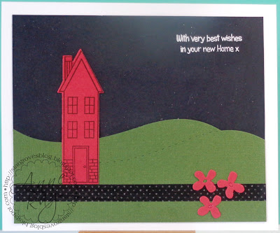 This card was made for the son of some dear friends. He is still into black and more black, hence the background! The house is a SU stamp and die, hillside die is Simon Says and the sentiment is Little Claire. I've added some washi tape and a few die cut SU sentiments.