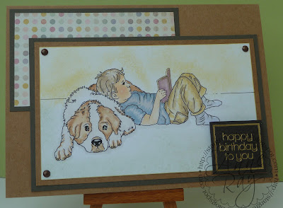 Welcome to this week's Crafty Cardmakers Challenge, this week the challenge is to make something for a boy or a man.  I've used the adorable Boy and Dog image from one of this week's sponsors:  Digi Doodle Shop.  I kept my card very simple to show off the fab image which I coloured with copics and Distress Inks, just adding a printed sentiment from Craftwork Cards and some design paper as well as a few layers.  The brads are a dark copper, works well for the masculine theme.
