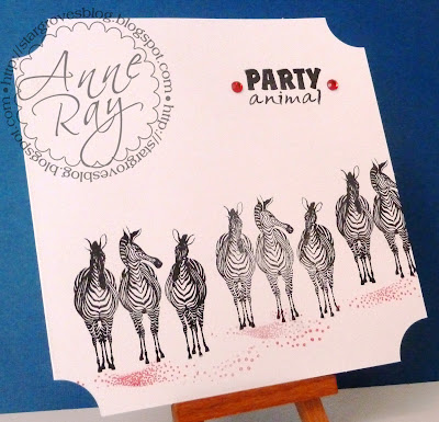It's Saturday so it is time for the Less is More Challenge, which is stripes and spots on a one layer card. For once, I knew what I was going to do straight away, but I have been out all day and couldn't get to the craft room until now. I love the Technique Tuesday zebras and the sentiment that goes with them. Stripes, sorted. And one of my most useful stamps ever is from the Dotty range by Stamp Addicts. I didn't mount the stamp onto a block, I just hold it folded lightly in half and use it at random, makes a fabulous grounding, sky, hills, anything really. This took maybe 5 minutes from start to finish but I really like it, what do you think?